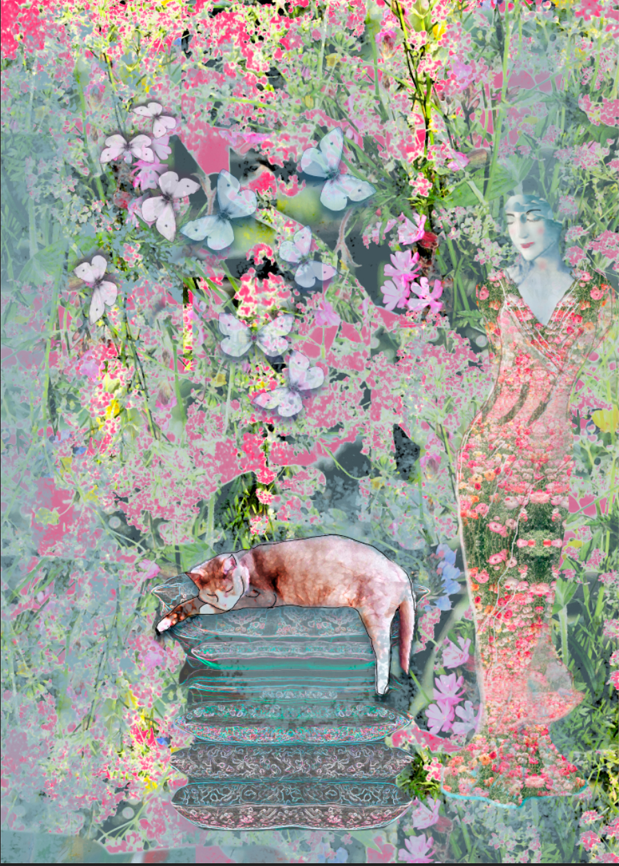 Mua jotenkin häiritsee tuo kissan asento. Se ei näytä rennolta, vaan siltä, että sen peräpää putoaa tyynyiiltä. Varsinkin, kun tuo sen alla oleva tyyny näyttä olevan kallellaan katsojaan päin (takareuna korkeammalla).