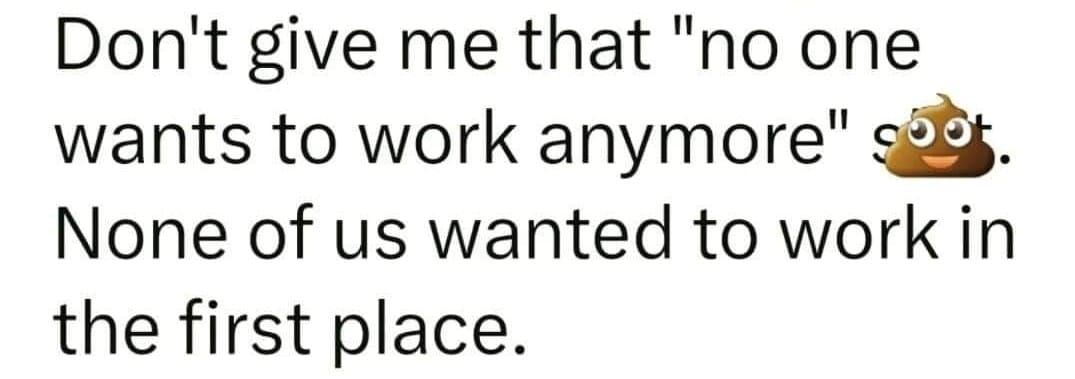 deep purpose kirjoitti: 22 Loka 2024, 09:55 Tää viesti saattaa olla minun osaltani toisaalta harhaanjohtavaa, koska olen ehkä menossa osa-aikatöihin tässä jossain vaiheessa, mutta itse en osoita sormella niitä jotka töitä ei tee.