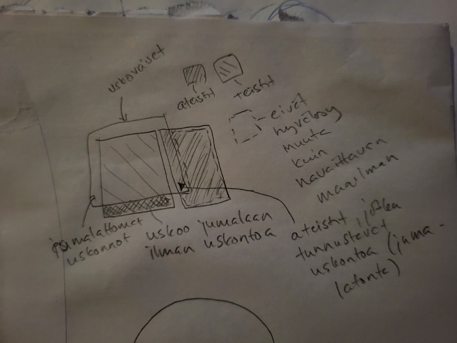 Tämä ketju osoittaa ainakin sen, miten eri tavoin samat termit voi käsittää. Ateismin ja uskovaisuuden luulisi olevan yksinkertaisimpia asioita määrittää, mutta niin vaan siitäkin saadaan vilkas ja rönsyilevä keskustelu. Onko sitten ihme, että "kirjoittelemme toistemme ohi", kun sama termi voidaan hahmottaa näinkin useilla tavoilla.