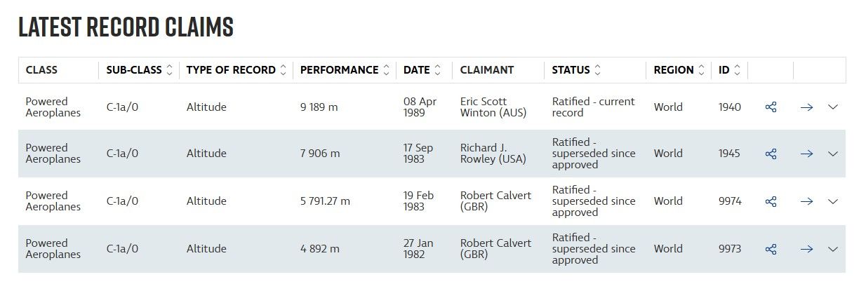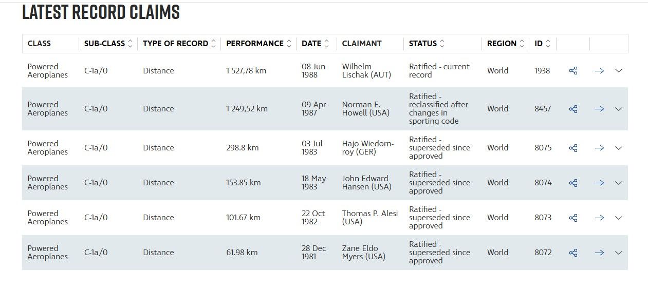 Jokaisen näiden ennätysten haltija on maansa kansallisankari ilmailupiireissä.