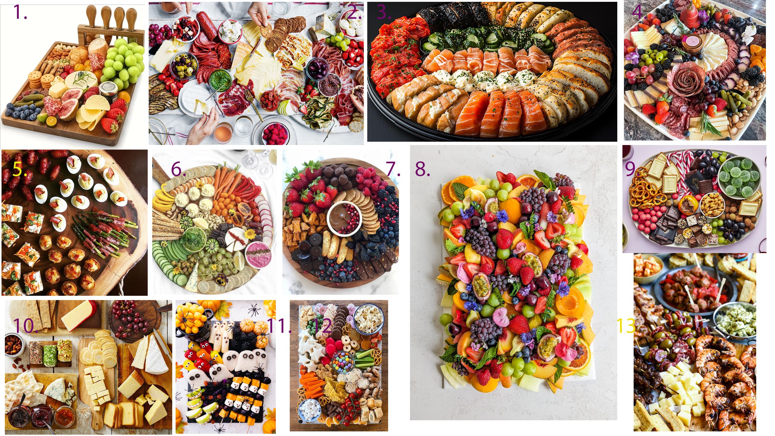 Mitkä kuvan kaksi herkkutarjotinta valitset järjestämiisi juhliin tarjolle? Kerro myös millaiset juhlat järjestäisit tarjottavien ympärille.