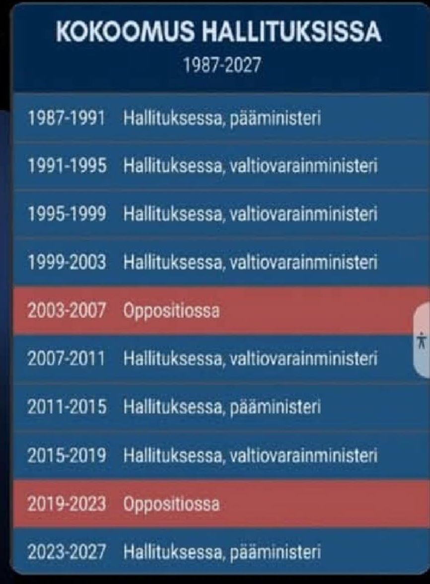 Sanoisin, että valtionvarainministeri on tekemässä talouspoliittidiq päätöksiä hyvinkin suuressa roolissaID10T kirjoitti: ↑20 Marras 2025, 07:58Muuten kiva, mutta et anna mitään painoarvoa sille, että 1991 - 1995 pääministerinä oli keskustan Aho, 1995 - 1999 SDP:n Lipponen, samoin 1999 - 2003, 2007 - 2011 pääministereinä olivat keskustan Vanhanen ja Kiviniemi ja 2015 - 2019 päämionisterinä oli keskustan Sipilä.Henry Borat kirjoitti: ↑19 Marras 2025, 21:41 Suomen historiassa ei ole koskaan otettu niin paljoa velkaa kuin nämä yksityissektorin rahoittajat ovat tehneet. Veronmaksajien rahat ja helvetisti vielä lisää velkaa pohattojen taskuun, samalla kun veronmaksajien omistamat palvelut on ajettu kriisipisteeseen ja taas niiden yksityisen sektorin ökyrikkaiden hyödyksi