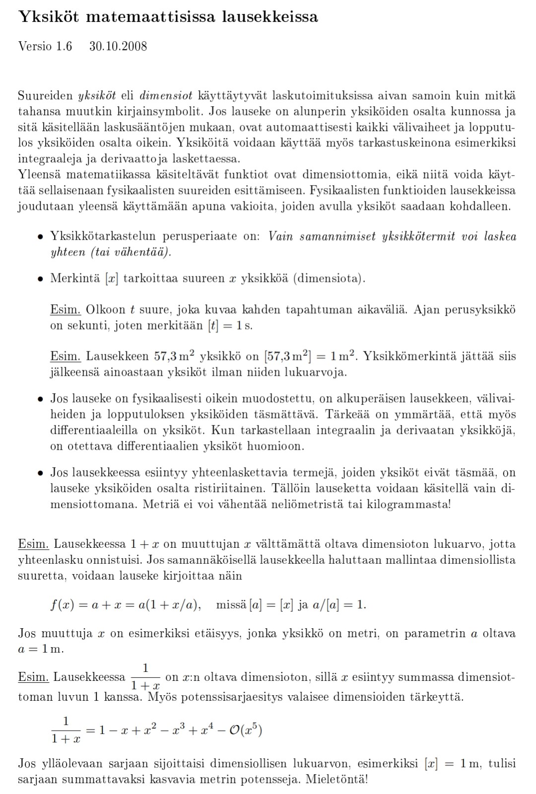 Q-S kirjoitti: 02 Kesä 2024, 21:52 Yksiköille voi tehdä käteviä muunnoksia. Otan nyt esimerkiksi valon nopeuden c, jonka yksiköt [c] = [L/T], eli siis matka per aika.