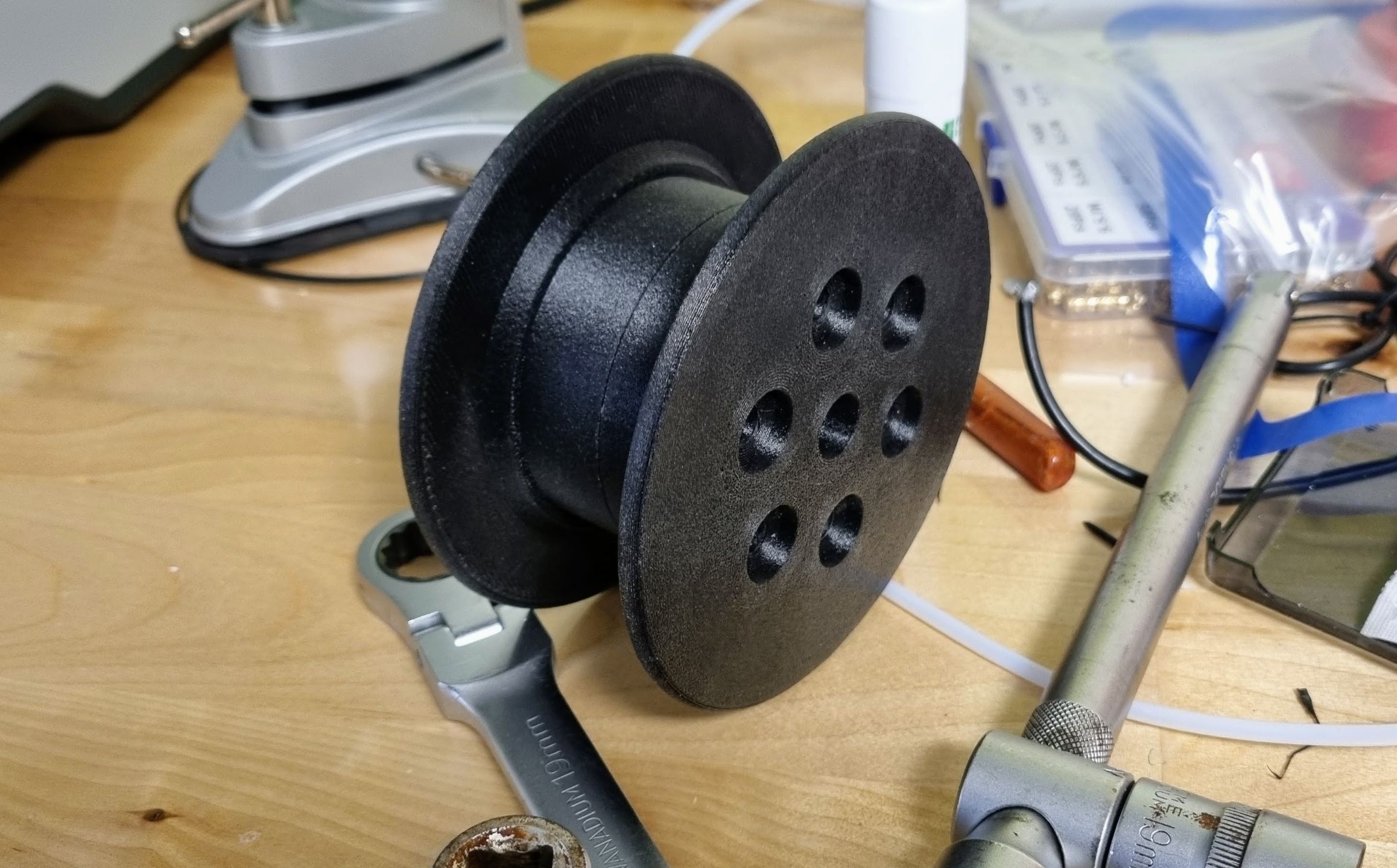 Tänään uskaltauduin ekaa kertaa kaivaan PPA-CF eli nylonhiilikuitukomposiitin laatikosta. Tai eilen kuivasin sitä keittiön uunissa 130C 12h ja säilytin yön yli ilmatiivissä boksissa missä puoli kiloa silicaa.