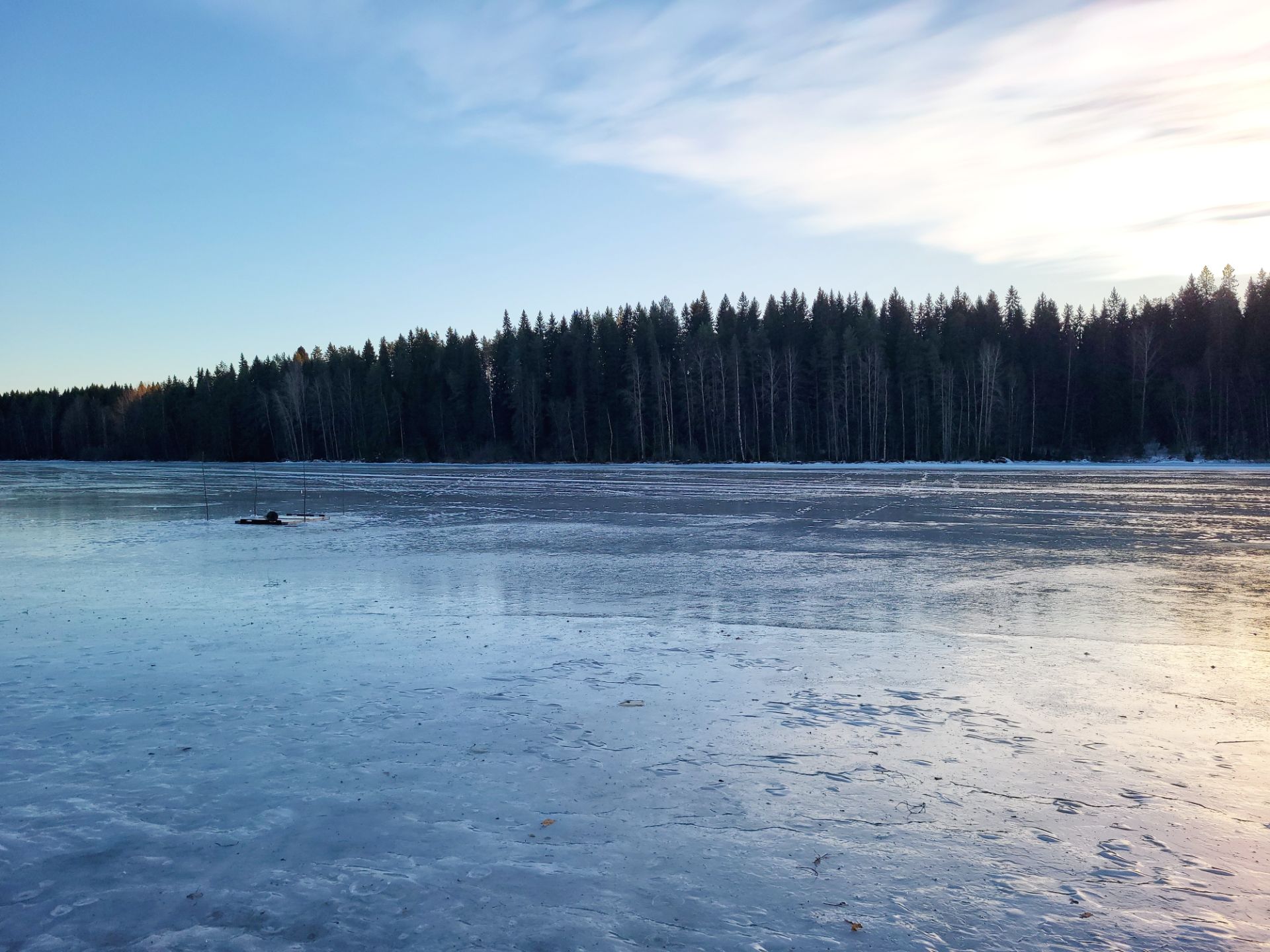 Kotijärvellä luistelujäät tammikuun puolivälissä. Ensimmäisen kerran sen 20 vuoden aikana, kun olen täällä asunut. Idän puoleinen ranta on saman näköinen yleensä vasta huhtikuussa.