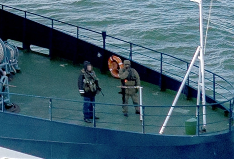 Venäläisalus jatkoi matkaansa pohjoiseen Ison-Beltin sillan alitse. Laivaliikennettä tarkkailevat harrastajat julkaisivat sosiaalisessa mediassa kuvia, joiden perusteella sen kannella oli ainakin kolme aseistautunutta sotilasta.