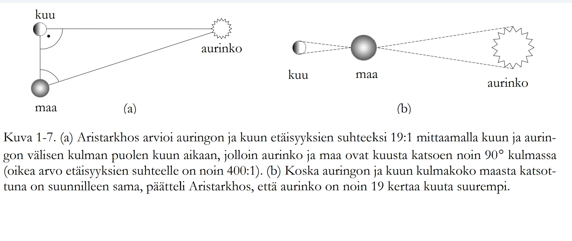 Tuostahan laskettiin jo antiikin aikaan kuun ja auringon suhteellista etäisyyttä maasta.