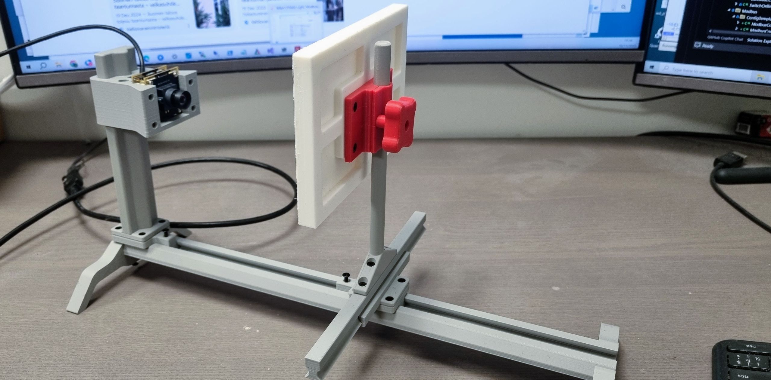 Joka suuntaan säädeltävä ja käänneltävä teline systeemi yhteen konenäköprojektiin. Tälläsiin tulostus on omiaan.