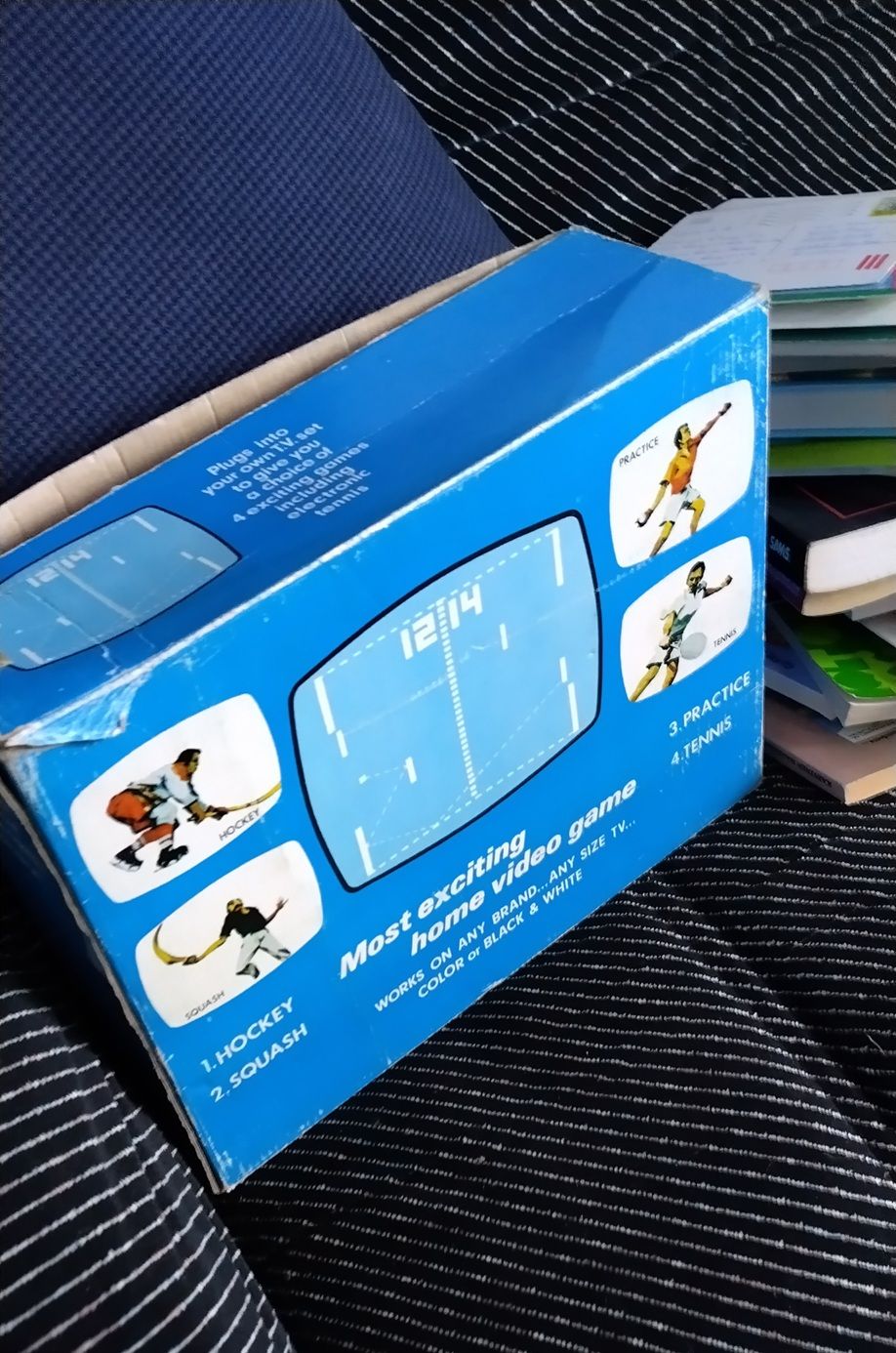 Mutta hommasin (Tai lainasin tai ihan miten vain) hyvin tykin pelikonsolin. Vahvistettu että tämä oli joululahja vuodelta 1978. Tästä alkoi peliurani. Grafiikka todella realistista ja yhdessä paketissa jopa neljä eri peliä.
