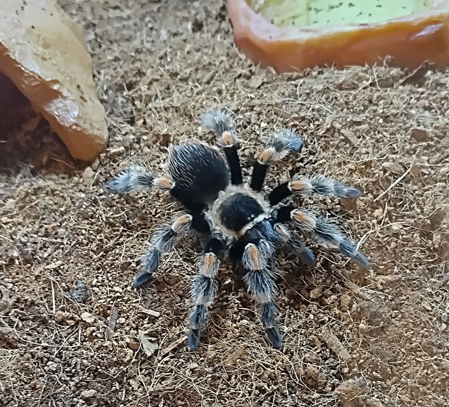Lasiodora on ollut hirveä syöppö nahanluonnin jälkeen. Ja ei enää niin arka. On oppinut että mahdollinen kolahdus tarkoittaa toukkaa. Koska toukat ovat isoja niin pidän viikon väliä aterioissa.