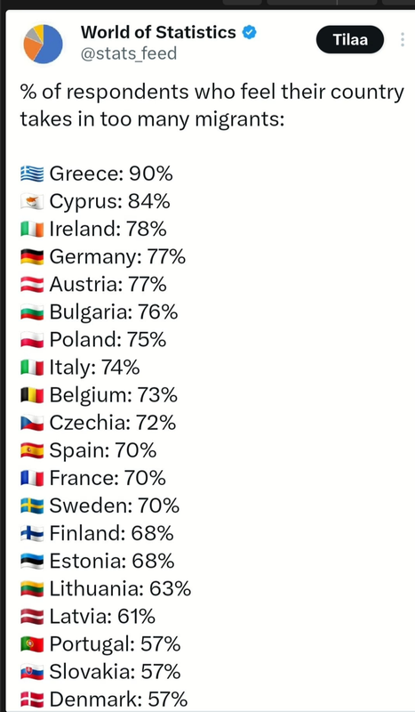Poliitikoilta unohtuu, että pakolaiset ovat aina jonkun naapureita.Toope kirjoitti: ↑17 Touko 2024, 21:12 https://i.postimg.cc/9MLq5QNs/stats-immigration2.png