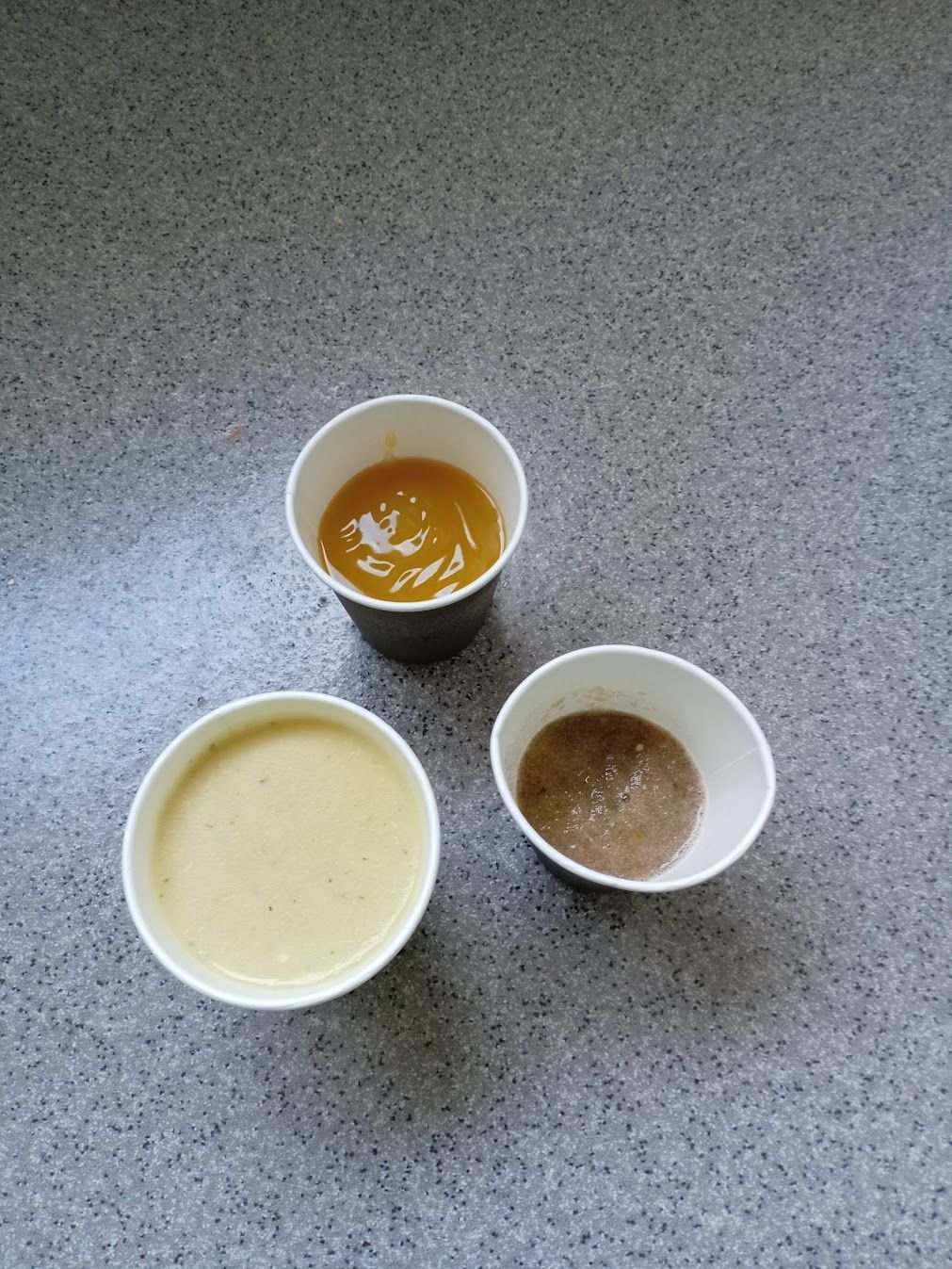 Ruoka on aina samaa, mutta se ei maistu miltään. Astiat ovat peltiä ja muovia.