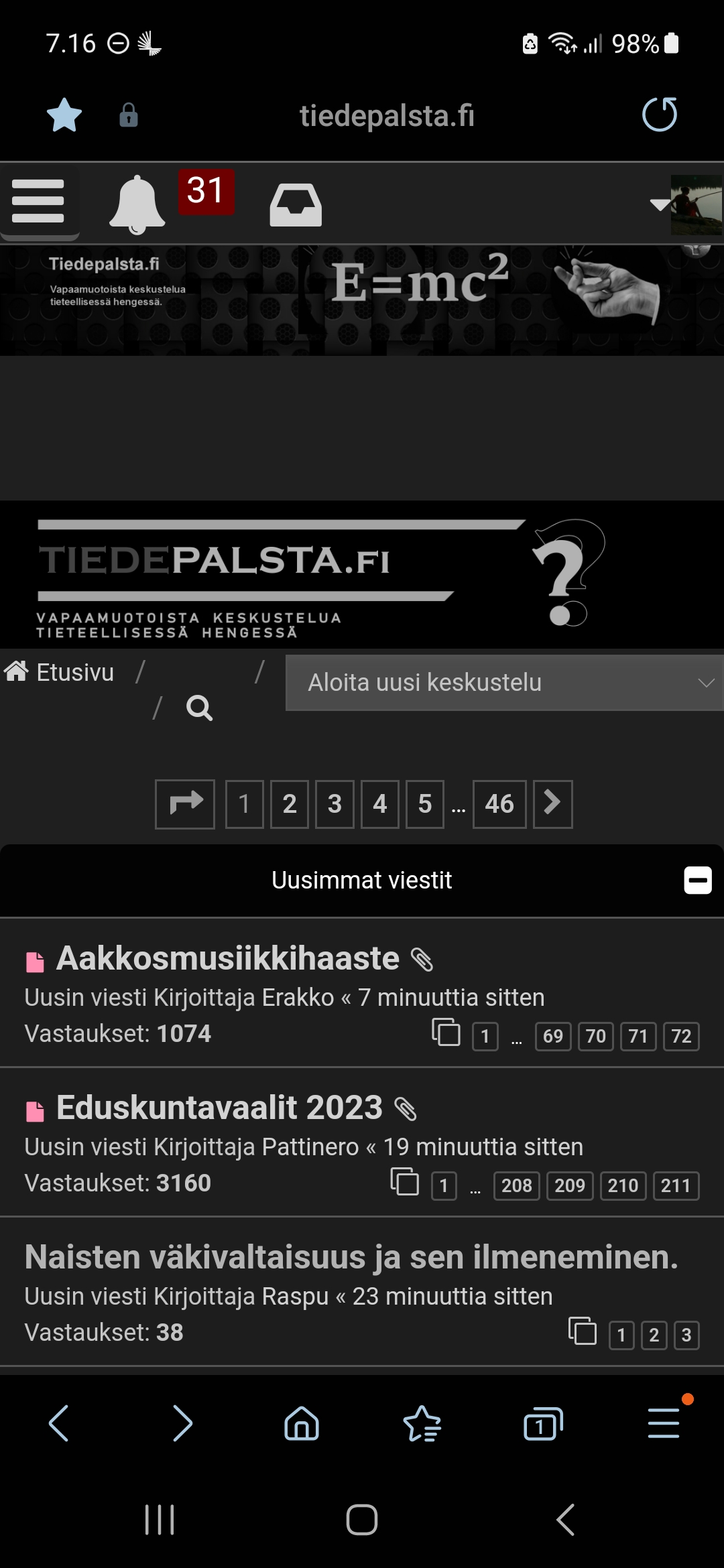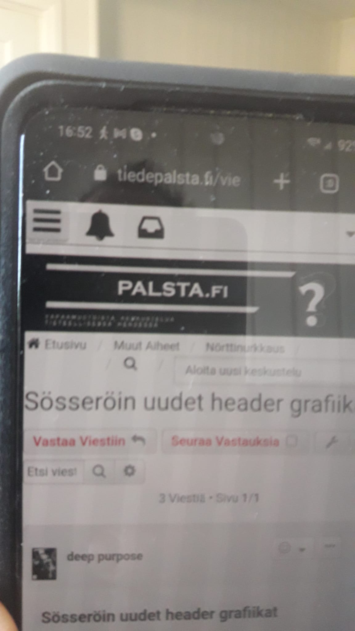 Pcllä näkyy mut puhelimella tiede teksti ei näy ollenkaan ja tosta allaolevasta ei saa selvää. Näkyy vaan palsta.fi