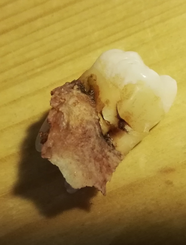 Tämmönen oli muutaman kymmentä vuotta tehnyt parodontiittisiltaa yläleukaluuhun. 2019 oli viimeinen hammaslääkärikäynti ennen kuin 2020 se poistettiin.