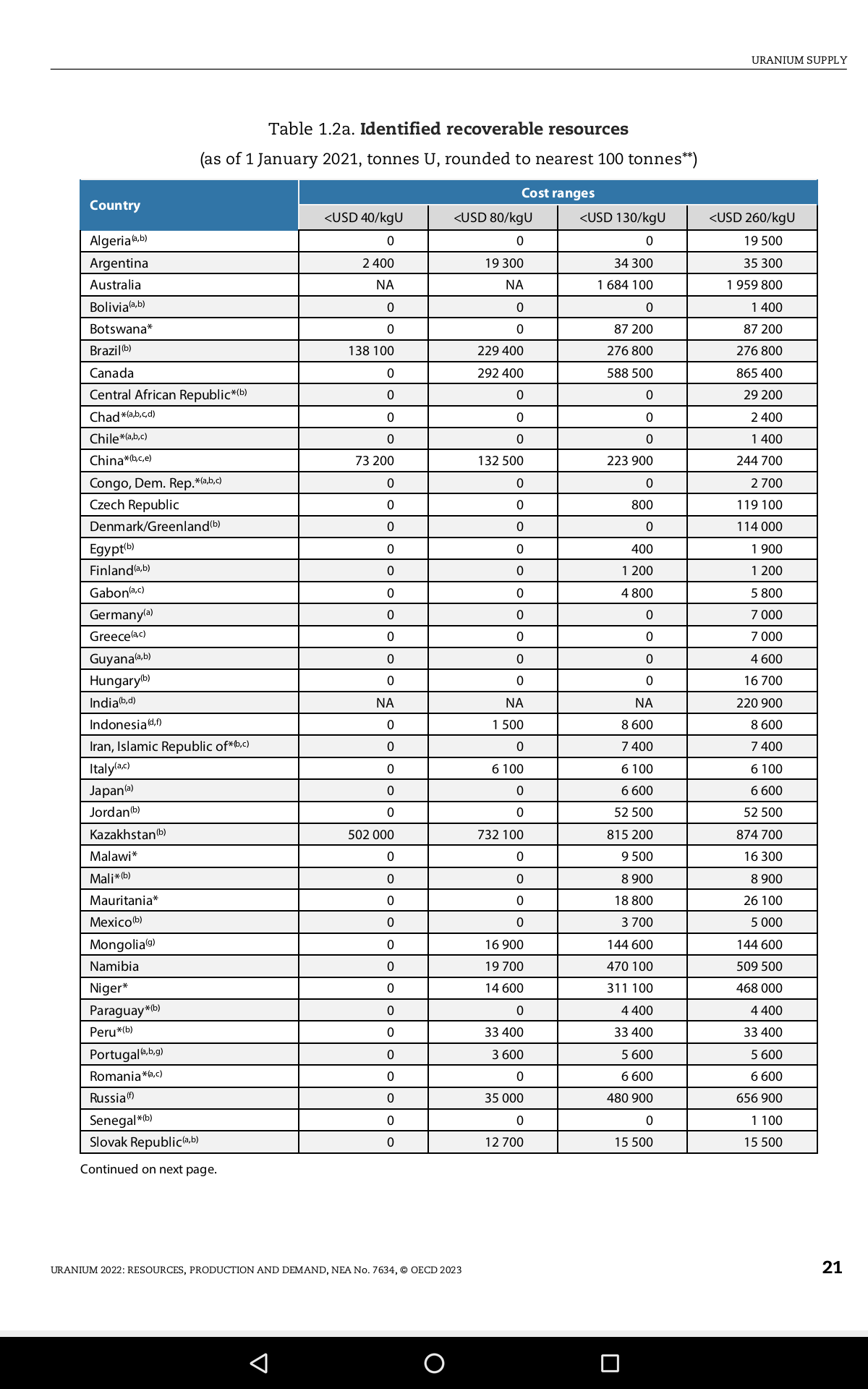 Käsittääkseni tuon olleen linkin taulukko kertoo hyödynnettäväksi tiedetyistä uraanimalmioista?