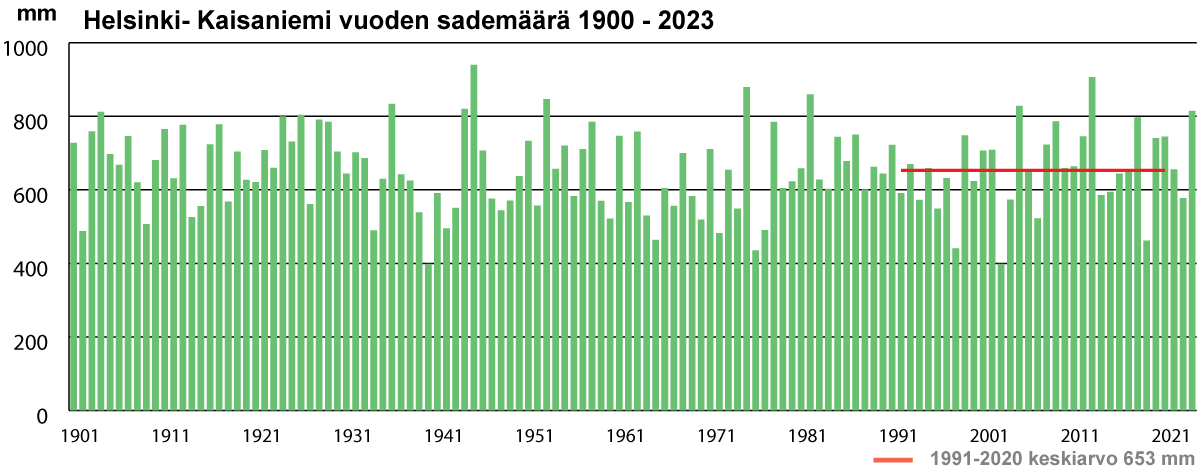 Talvisateet ovat lisääntyneet noin 20 millimetriä koko mitattuna ajanjaksona, ja Lapissa myös kevätsateet ovat runsastuneet kymmenellä millimetrillä. Muutos on tilastollisesti merkittävä koko maassa."