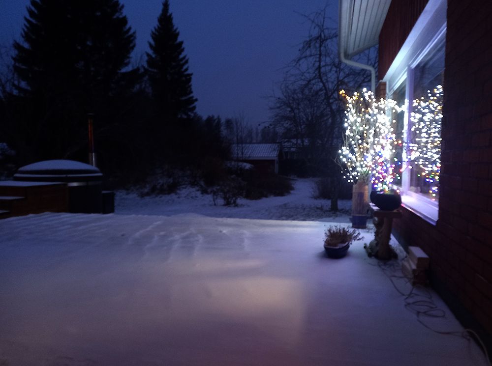 Täällä ei ole juurikaan satanut. Muutama sentti maassa. Huomenna pitäisi tulla vähän lisää. Olisi hyvä saada vähän eristystä kasveja ajatellen, kun kerran aika kylmäksi on menossa. Keskiviikkoaamuksi lupaa yli 20 pakkasta.