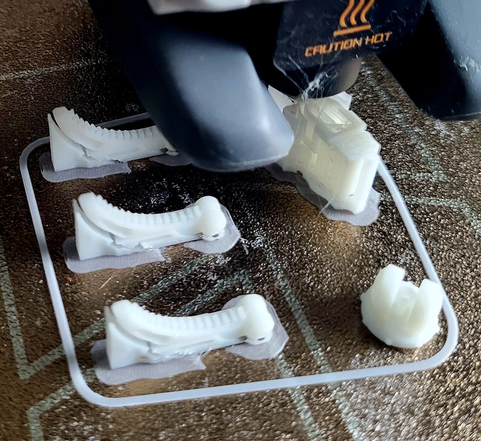 Uudempi laulaa aika lailla 24/7, poika tulostaa figuja. Niiden tukien optimointi on oma taiteenlajinsa. Kuten myös tietynlaisten osien pitäminen paikallaan alustassa.