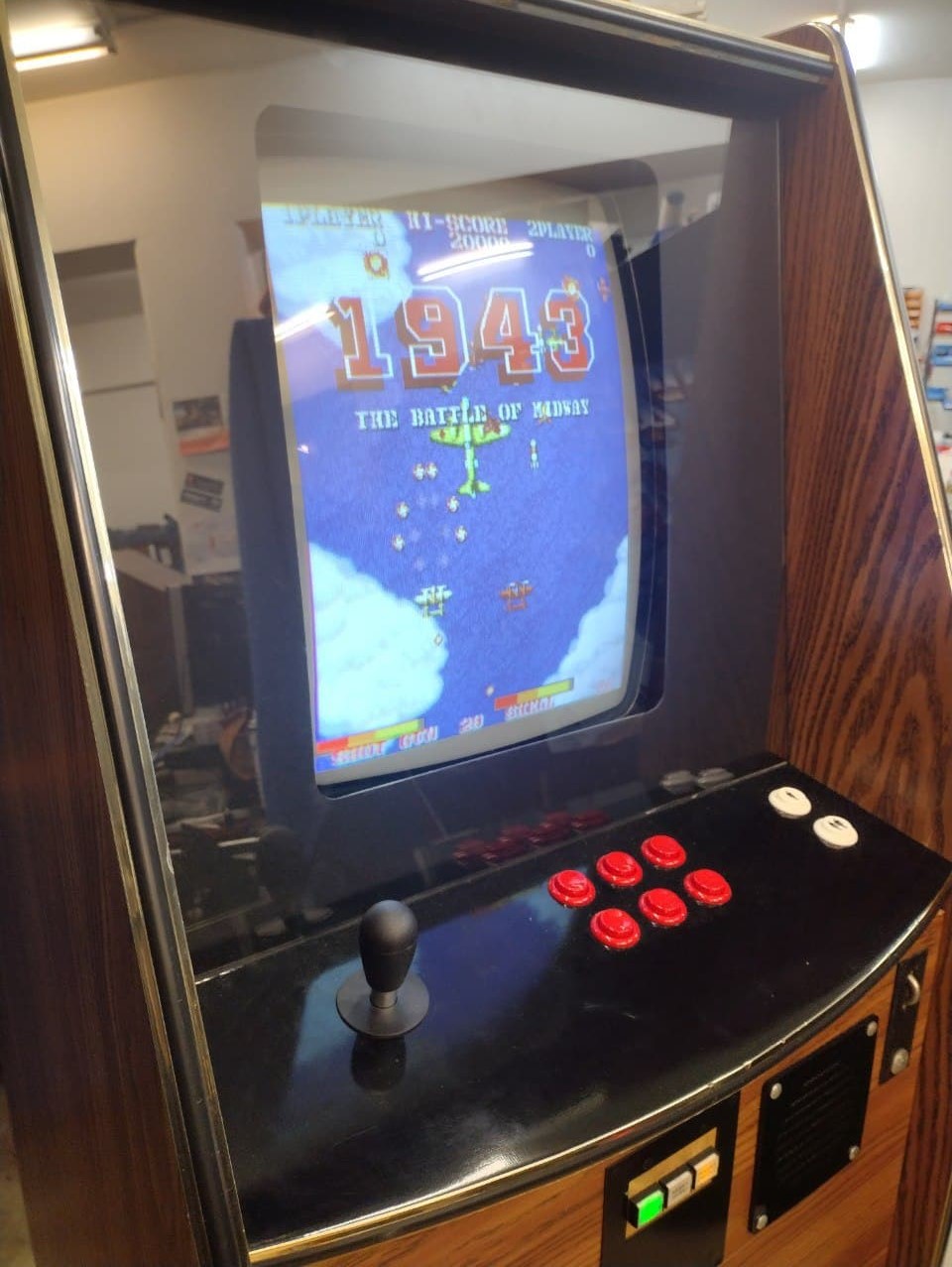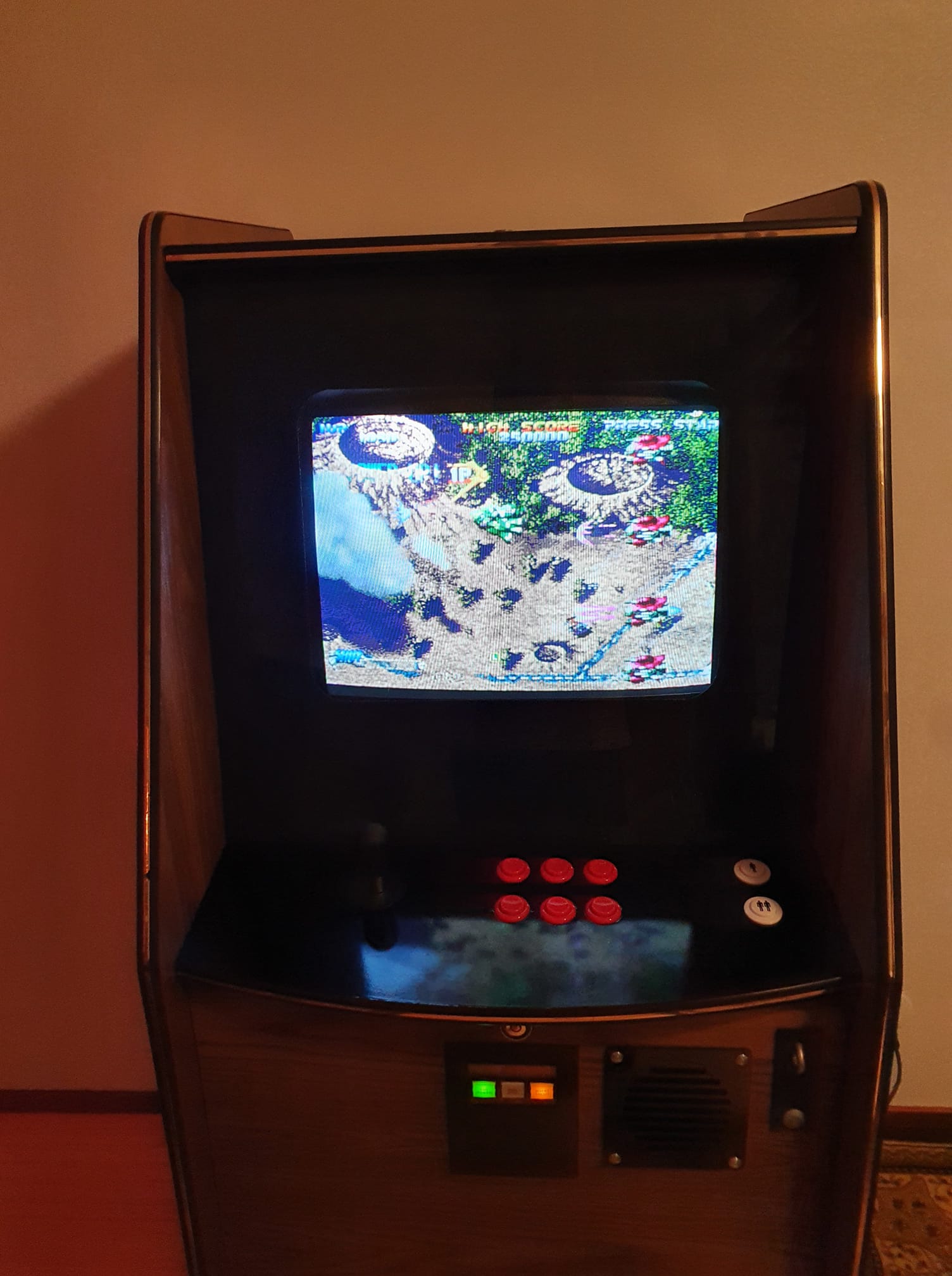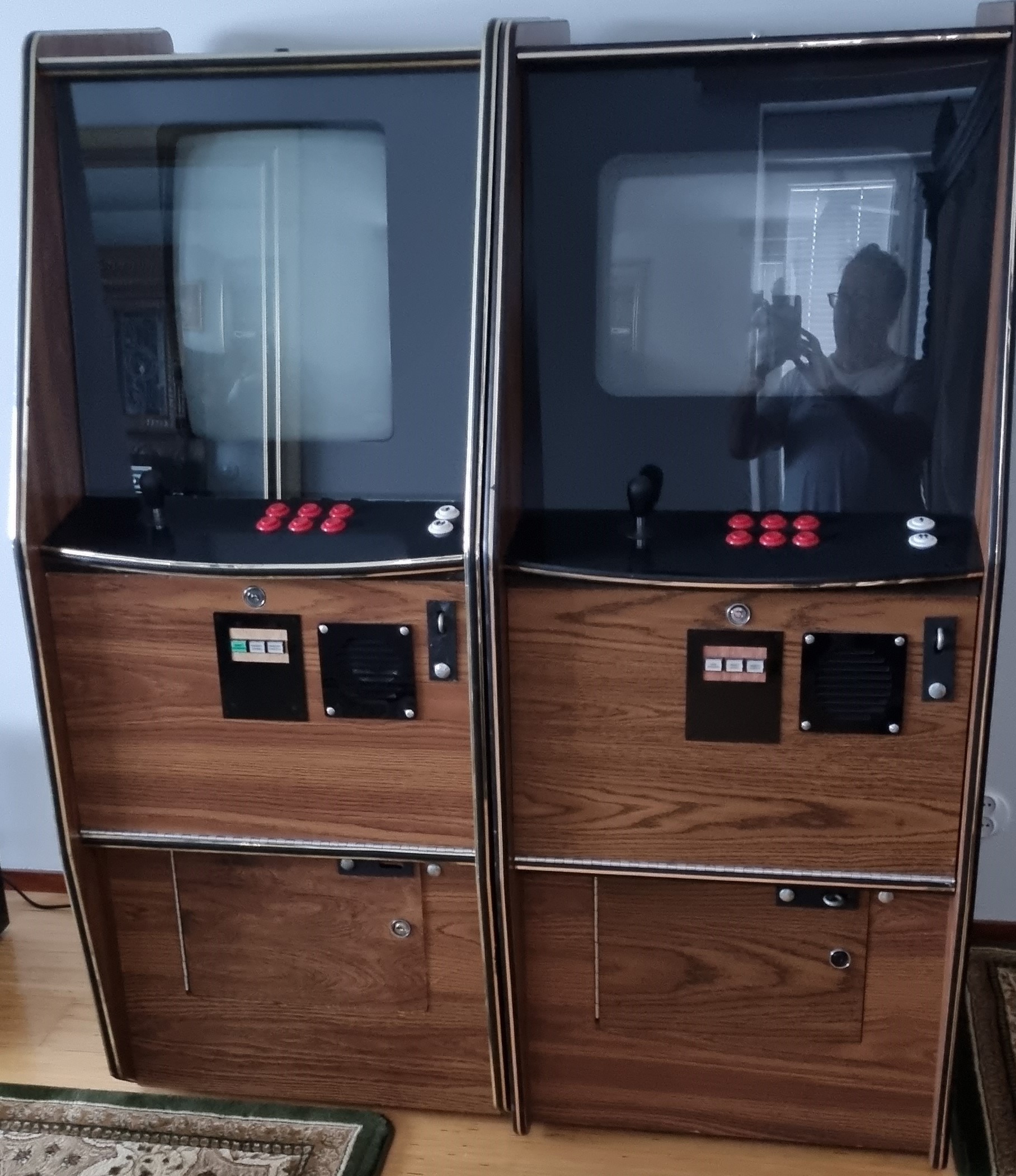 No nämähän on RAY:n hedelmäpelikotelot ensinnäkin. Vaakanäytöllisessä on alkuperäinen crt-putki, mutta pystynäytöllisessä sitten Nintendon arcade kabinetista peräisin oleva sillä alkuperäinen ei oikein olisi pystyssä tuonne mahtunut. Värkkien aivoina on Mister joka on DE10-Nanon päälle tehty. Sitten siellä on audiota varten vahvistin ja tietysti virtalähde. Käytännössä kotelo siis lähes tyhjää täynnä. Jamma kaapelointi eli kyllähän tuohon niitä alkuperäisiäkin pelejä voisi sovitella. Reprocade niminen firma täältä Tampereelta nämä minulle mittatilaustyönä värkännyt. Misterin ympärillä on sitten viriili kehittäjäporukka joka porttaa näitä vanhoja pelejä sille.