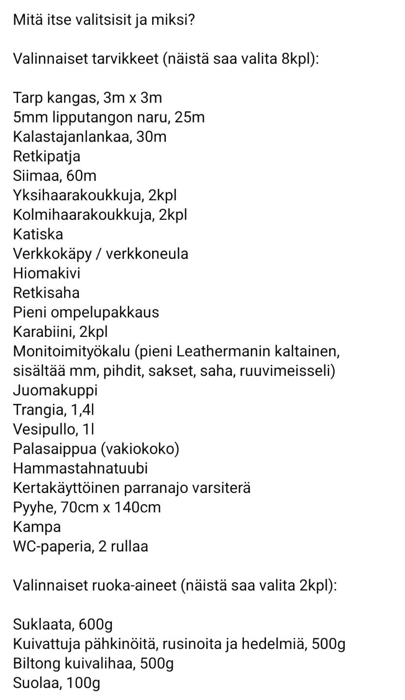 Mitä valitsisitte noista valinnaisista tarvikkeista?